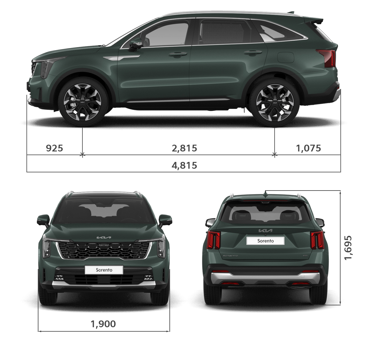 Vertically oriented tail lamps at each side give the Sorento a more formidable presence, especially in the dark. Its practical and agile demeanor is punctuated by black cladding and wide skid-plate.