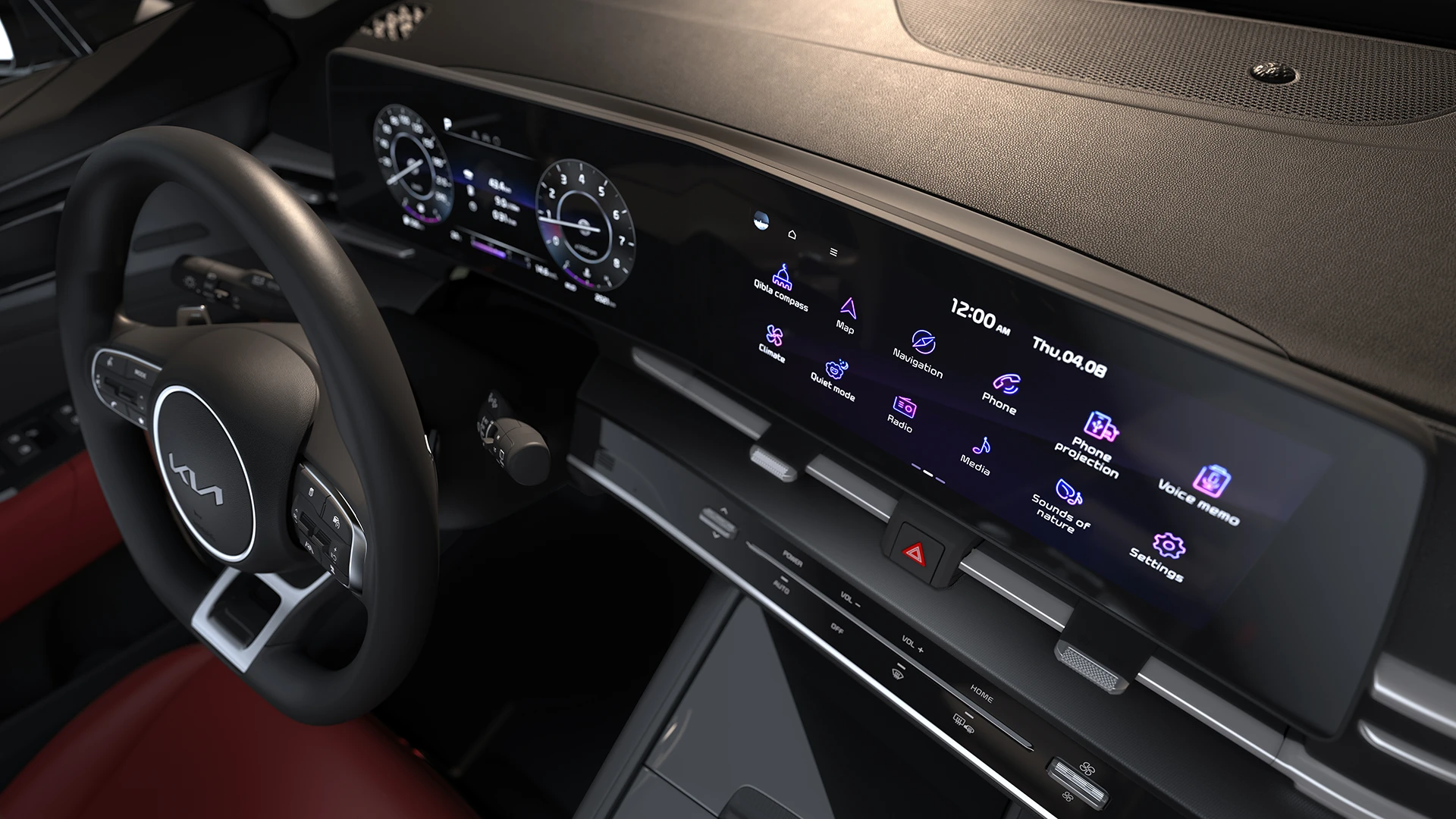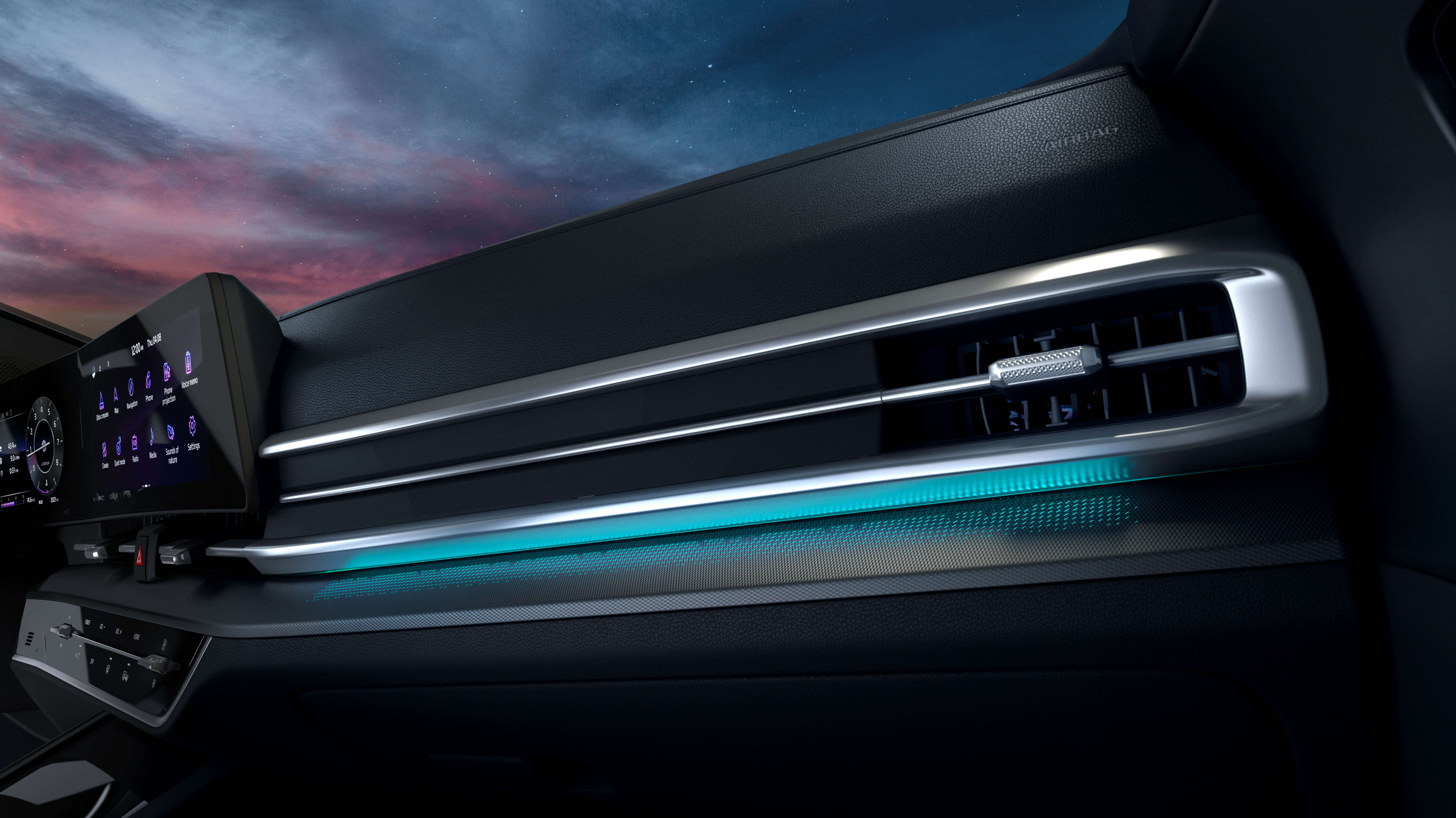 The 12.3'' instrument panel and 12.3'' curved center screen visually amplify the interior space and deliver a high level of technology.